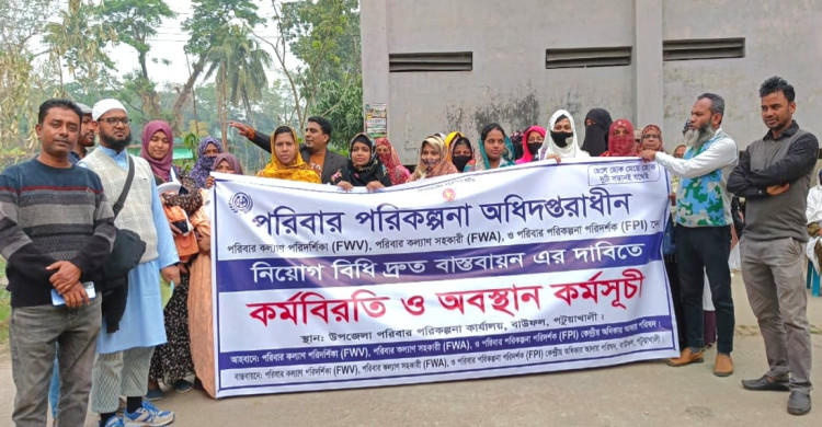 বাউফলে পরিবার পরিকল্পনা অধিদপ্তরে মাঠকর্মীদের বিক্ষোভ ও প্রতিবাদ সভা অনুষ্ঠিত