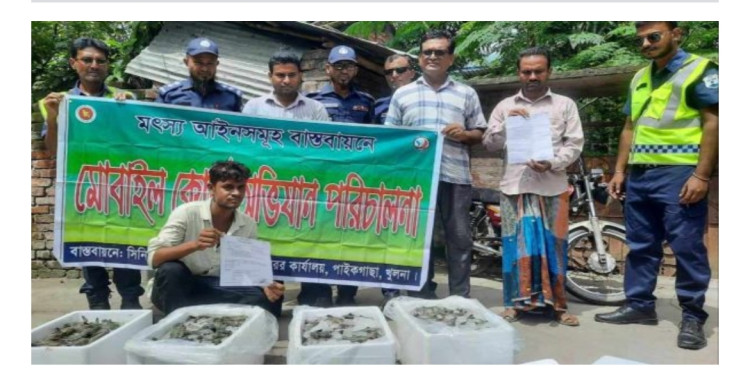 পাইকগাছায় ৬০কেজি বাগদা চিংড়ি ও ৩ হাজার মিটার জাল জব্দ