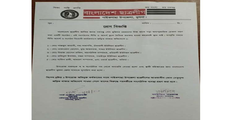 পাইকগাছায় সাঈদীর মৃত্যু নিয়ে পোস্ট করায় ছাত্রলীগের ৫ নেতা কর্মিকে সাময়িক বহিষ্কার