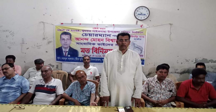 সাংবাদিকদের সাথে মতবিনিময় সভায় উপজেলা চেয়ারম্যান প্রার্থী আনন্দ মোহন: নেতা নয় সেবক হতে এসেছি
