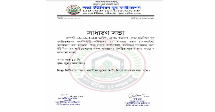 লতা ইউনিয়ন যুব ফাউন্ডেশনের ভার্চুয়াল সভা অনুষ্ঠিত