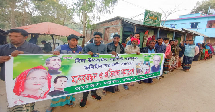 মান্দায় ভূমিহীনদের জমি রক্ষার্থে মানববন্ধন ও প্রতিবাদ সমাবেশ