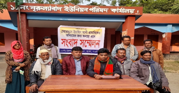 মান্দায় চেয়ারম্যানের বিরুদ্ধে অনাস্থা এনে সংবাদ সম্মেলন