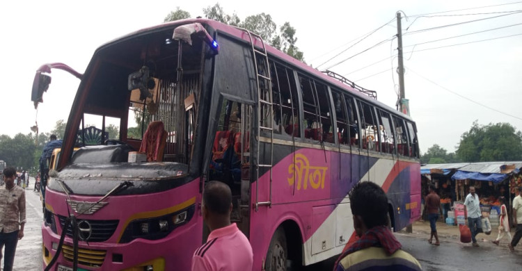 মান্দায় বাস-সিএনজি ভাংচুর রাস্তা অবরোধ