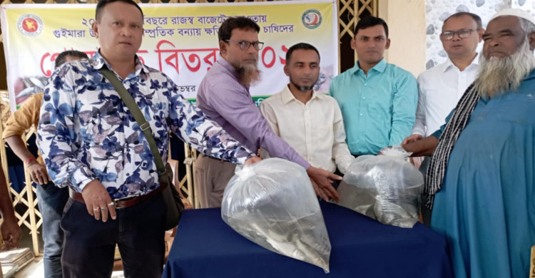 গুইমারায় সাম্প্রতিক বন্যায় ক্ষতিগ্রস্ত মৎস্য চাষীদের মাঝে মাছের পোনা বিতরণ