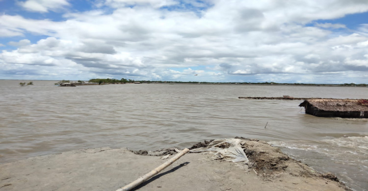 কয়রায় বেড়িবাঁধ ভেঙে ৫ গ্রাম প্লাবিত, আতংকে ১৭ গ্রামের মানুষ