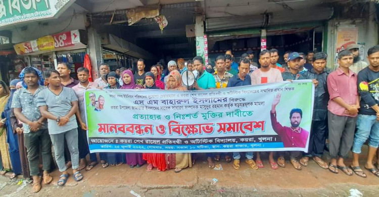 ইউপি চেয়ারম্যানের বিরুদ্ধে মামলা প্রত্যাহার ও মুক্তির দাবিতে মানববন্ধন সমাবেশ