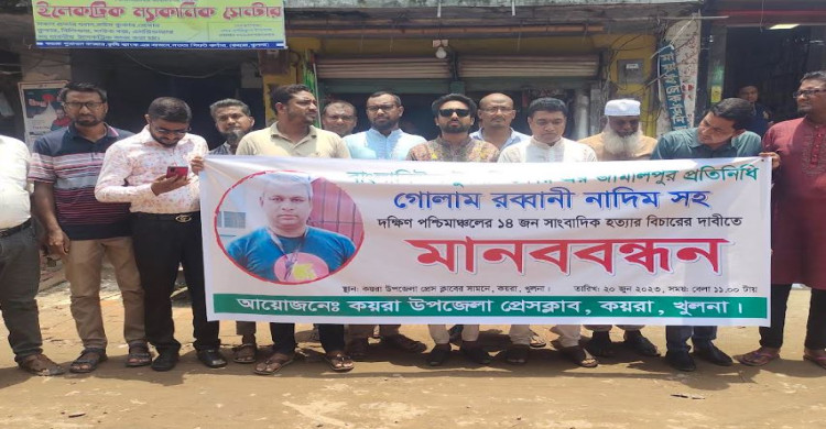 সাংবাদিক নাদিম হত্যাকারীদের বিচারের দাবিতে কয়রায় মানববন্ধন