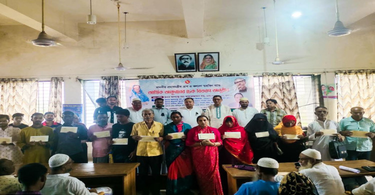 কয়রায় ঢেউটিন ও চেক বিতরণ