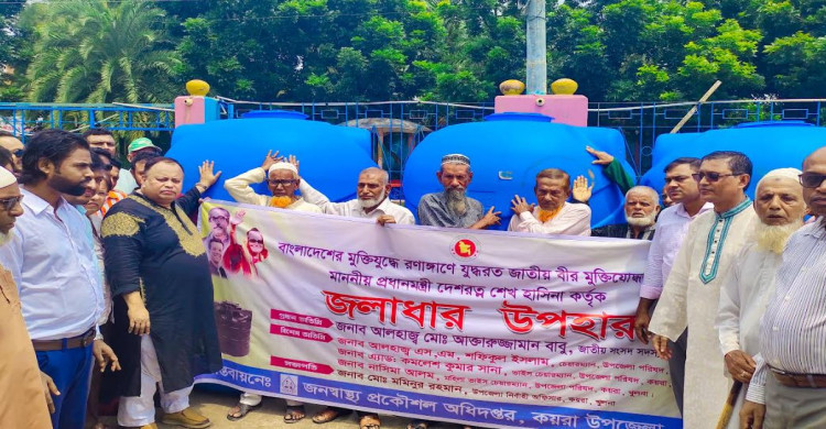 কয়রায় মুক্তিযোদ্ধাদের মাঝে পানির ট্যাংকি বিতরণ