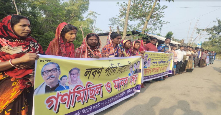 কয়রায় লবন পানির আগ্রসন থেকে পরিবেশ ও জীবন বাঁচাতে মানববন্ধন