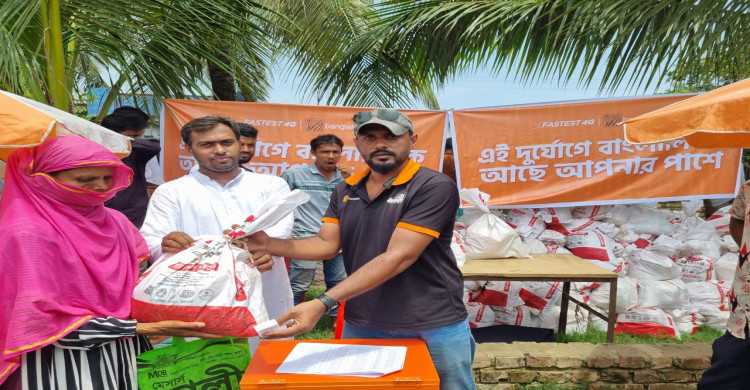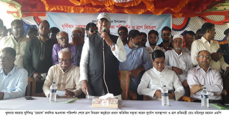 কয়রায় রেমালে ক্ষতিগ্রস্তদের মাঝে ত্রাণসামগ্রী বিতরণ