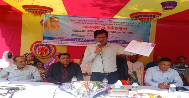 চৌহালীতে উপকারভোগীদের মাঝে জব কার্ড বিতরণ