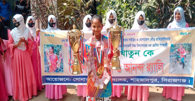 শাহজাদপুরে শিক্ষার্থী স্বপ্না খাতুনকে বিশাল সংবর্ধনা