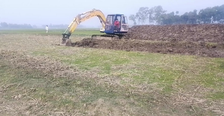 রায়গঞ্জে সোনাখাড়া ইউনিয়নে অনুমতি ছাড়াই পুকুর খনন