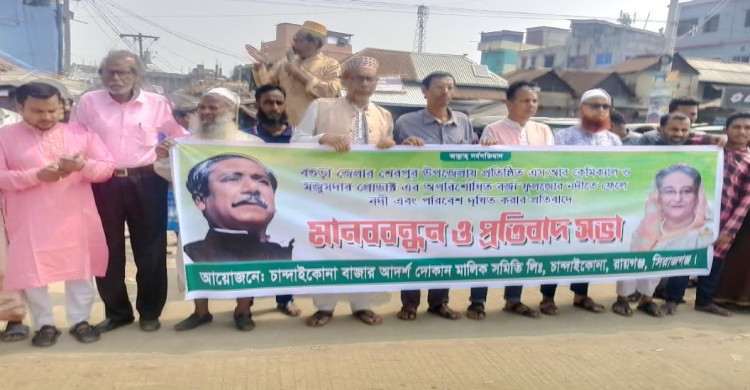 রায়গঞ্জে কারখানার বিষাক্ত বর্জ্যে নদী দূষণ রোধে মানববন্ধন