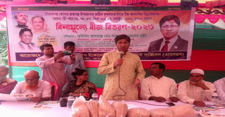 রায়গঞ্জে প্রান্তিক কৃষকদের মাঝে ধান বীজ বিতরণ