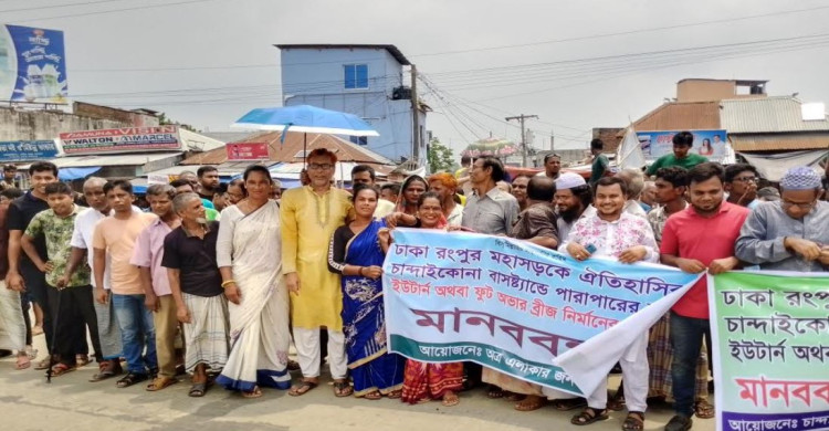 রায়গঞ্জে ফুটওভার ব্রিজ ও ইউটার্নের দাবি নিয়ে রাস্তায় জনসাধারণ
