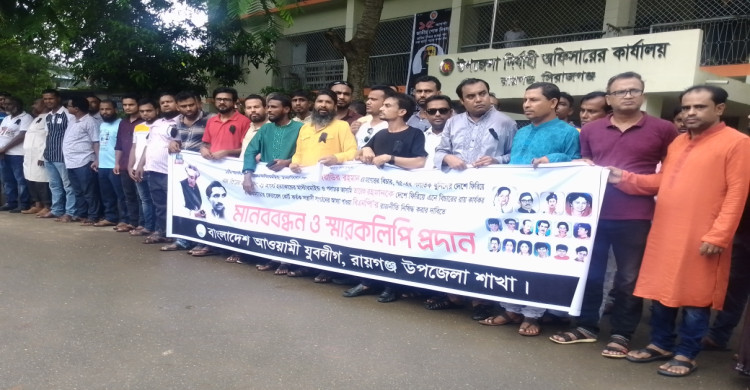রায়গঞ্জে যুব লীগের মানববন্ধন ও স্মারকলিপি প্রদান