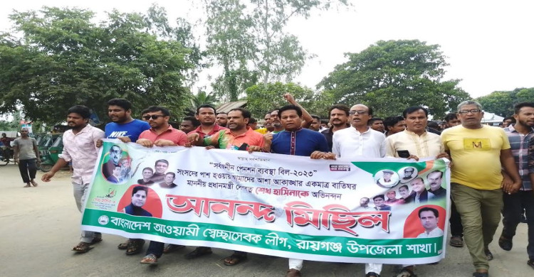 রায়গঞ্জে আওয়ামী স্বেচ্ছাসেবক লীগের আনন্দ মিছিল অনুষ্ঠিত