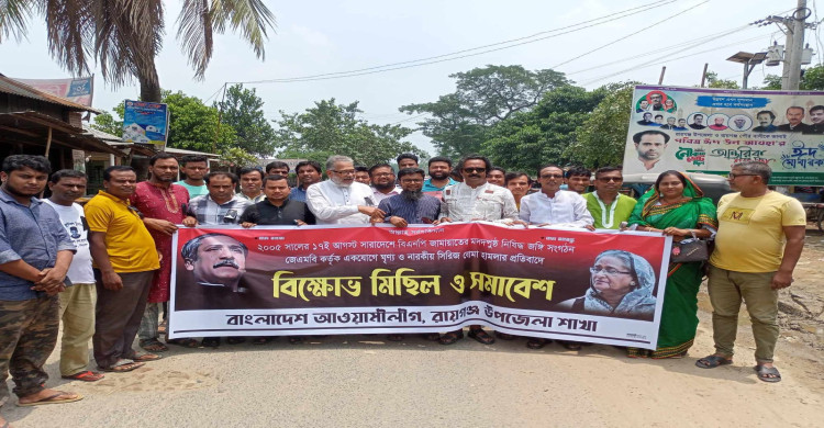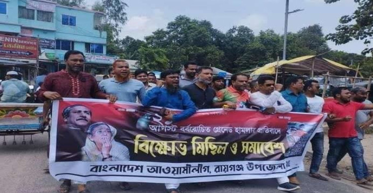 রায়গঞ্জে ২১ আগস্ট গ্রেনেড হামলার প্রতিবাদে প্রতিবাদ সভা অনুষ্ঠিত