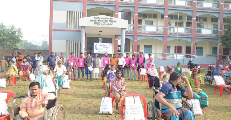 রায়গঞ্জে প্রতিবন্ধীদের মাঝে বিনামূল্যে রমজানের বাজার বিতরণ