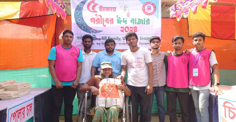 সলঙ্গায় সামাজিক সংগঠনের ঈদ বাজার বিতরণ
