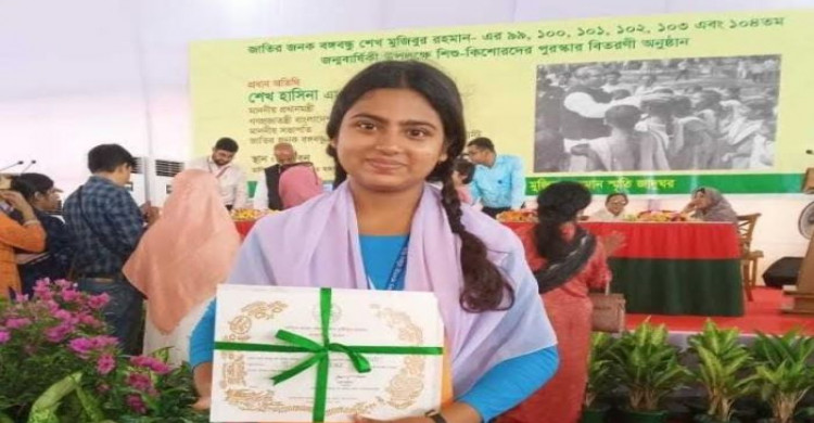 বঙ্গবন্ধুকে নিয়ে রচনা লিখে পুরস্কার পেল অদম্য মেধাবী মহুয়া সাহা