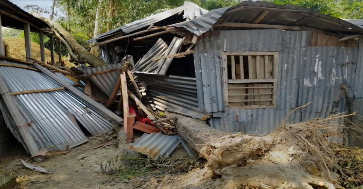 রায়গঞ্জে ঝড়ে গাছ পড়ে ভেঙেছে কৃষকের ঘর