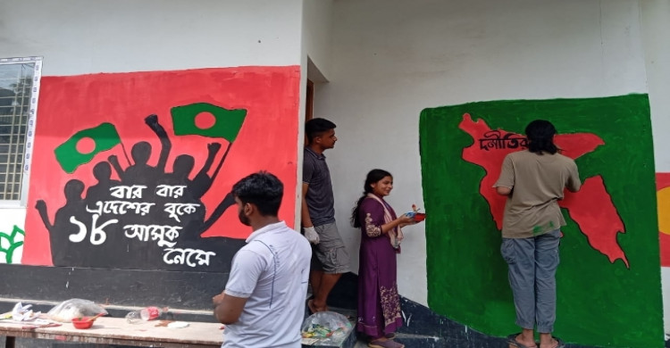 রায়গঞ্জে শিক্ষার্থীদের রঙ-তুলির আঁচড়ে বদলে গেছে দেয়ালের চিত্র