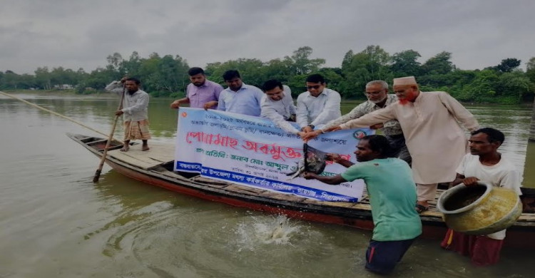 রায়গঞ্জে মাছের পোনা অবমুক্তকরণ