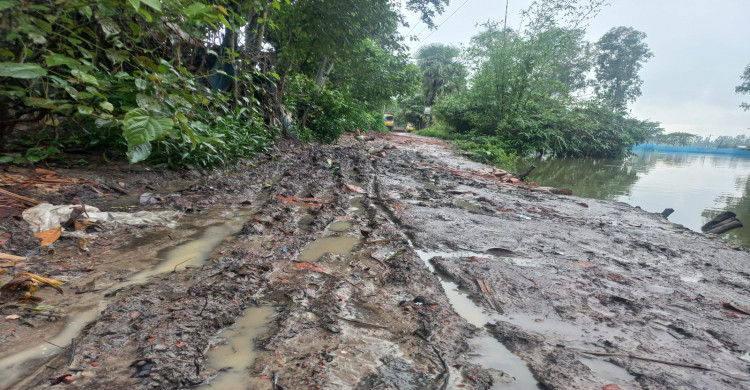 রায়গঞ্জে অল্প বৃষ্টিতেই আঞ্চলিক সড়কের বেহালদশা
