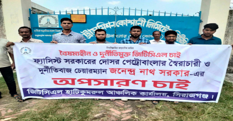 সলঙ্গায় পেট্রোবাংলার চেয়ারম্যানের অপসারণ দাবিতে মানববন্ধন