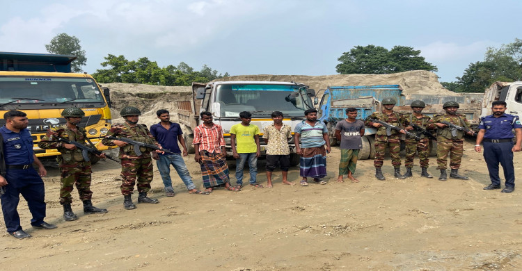 রায়গঞ্জে অবৈধভাবে বালু উত্তোলন, এক লাখ টাকা জরিমানা