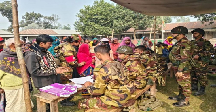 রায়গঞ্জে বিনামূল্যে চিকিৎসা সেবা দিল সেনাবাহিনী