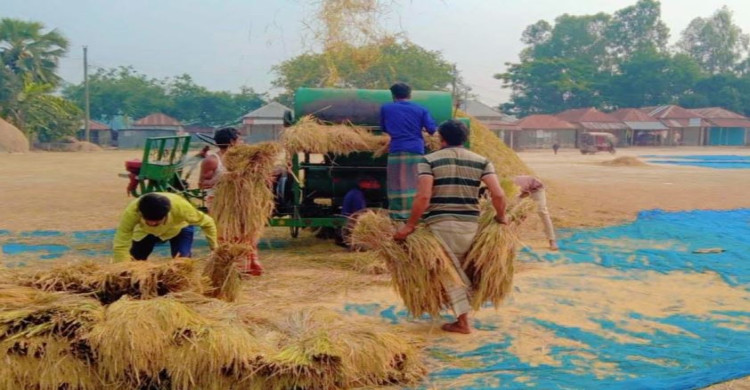 রায়গঞ্জে ধান কাটা-মাড়াই শেষে গোলায় ভরতে ব্যস্ত কৃষক কৃষাণী