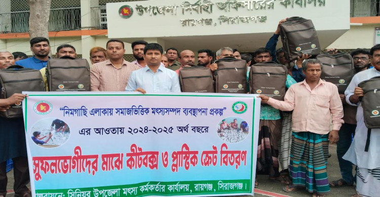 রায়গঞ্জে চাষীদের মাঝে মৎস উপকরণ বিতরণ