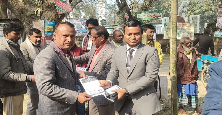 রায়গঞ্জে প্রশাসনের পক্ষে গণভোটের প্রচারণা পত্র বিতরণ করেন এসিল্যান্ড মাসুদ রানা