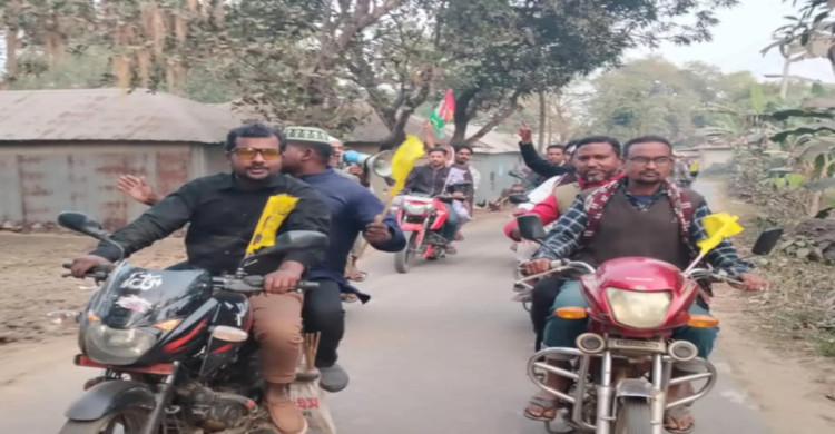 রায়গঞ্জে ধানের শীষের পক্ষে কৃষক দলের মোটরসাইকেল শোডাউন