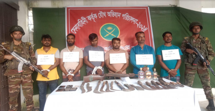 কালিয়ায় সেনাবাহিনীর অভিযানে দেশীয় অস্ত্রসহ আটক ৬