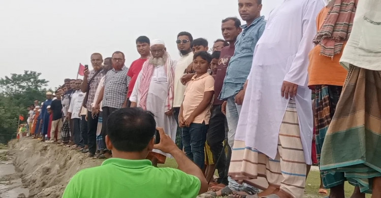 কালিয়ায় নবগঙ্গার ভাঙন থেকে বড়দিয়া বাজার ও মাদ্রাসা রক্ষায় ছাত্র-এলাকাবাসীর মানববন্ধন