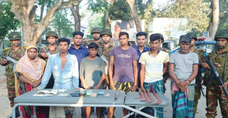 কালিয়ায় সেনাবাহিনীর অভিযানে দেশীয় অস্ত্র, মাদকদ্রব্য ও নগদ টাকা সহ আটক ৬