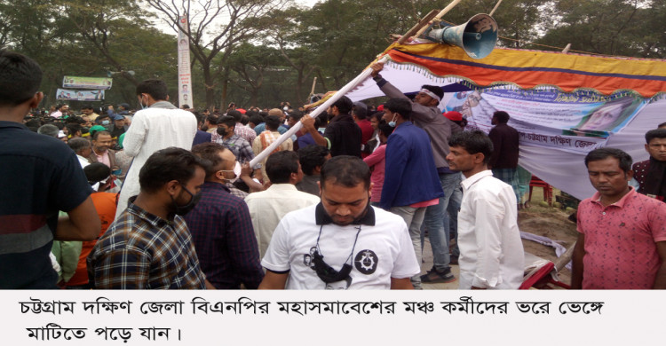 চট্টগ্রাম দক্ষিণ জেলা বিএনপির মহাসমাবেশের মঞ্চ কর্মীদের ভরে ভেঙ্গে পড়ল