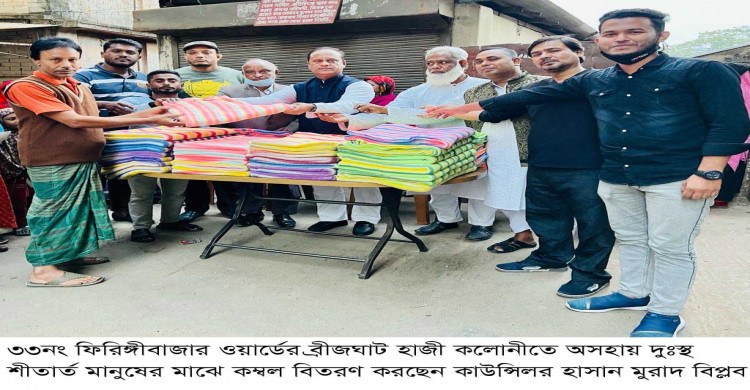 ফিরিঙ্গী বাজার হাজী কলোনীতে শীতার্তদের মাঝে কম্বল বিতরণ