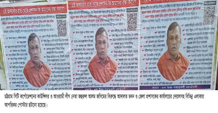 চসিক কাউন্সিলর জরুল আলম জসিমের বিরুদ্ধে আপত্তিকর পোস্টার