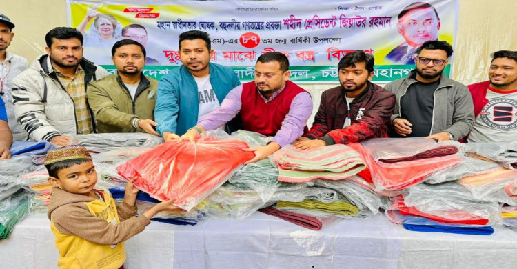 চট্টগ্রামে জিয়ার জন্মবার্ষিকী উপলক্ষে ব্যারিস্টার মীর হেলালের শীতবস্ত্র বিতরণ
