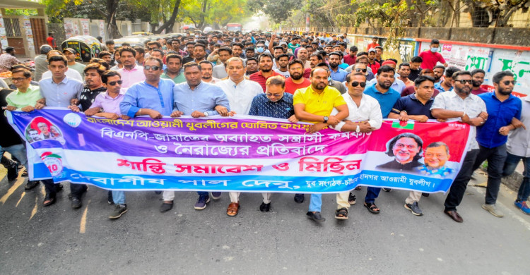 চট্টগ্রামে যুবলীগনেতা দেবুর উদ্যোগে বিক্ষোভ মিছিল