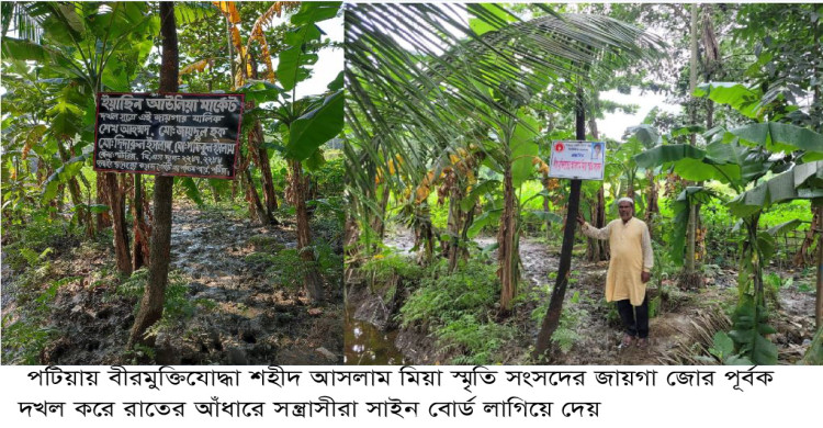 পটিয়ায় মুক্তিযোদ্ধা শহীদ আসলাম মিয়া স্মৃতি সংসদের জায়গা জোর পূর্বক দখল করে সাইন বোর্ড