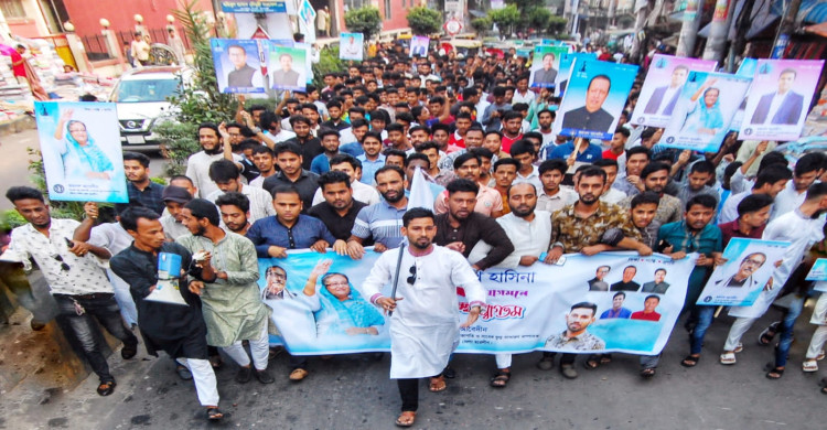 প্রধানমন্ত্রীর আগমন উপলক্ষ্যে দক্ষিণ জেলা ছাত্রলীগের আনন্দ মিছিল