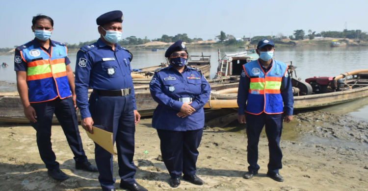 সুনামগঞ্জ নৌ পুলিশের অভিযানে ড্রেজার-নৌকাসহ আটক ৭